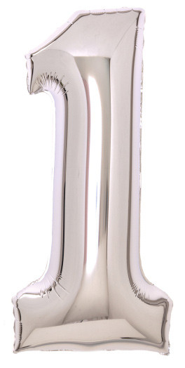 Silver, Ezüst 1-es szám fólia lufi 66 cm