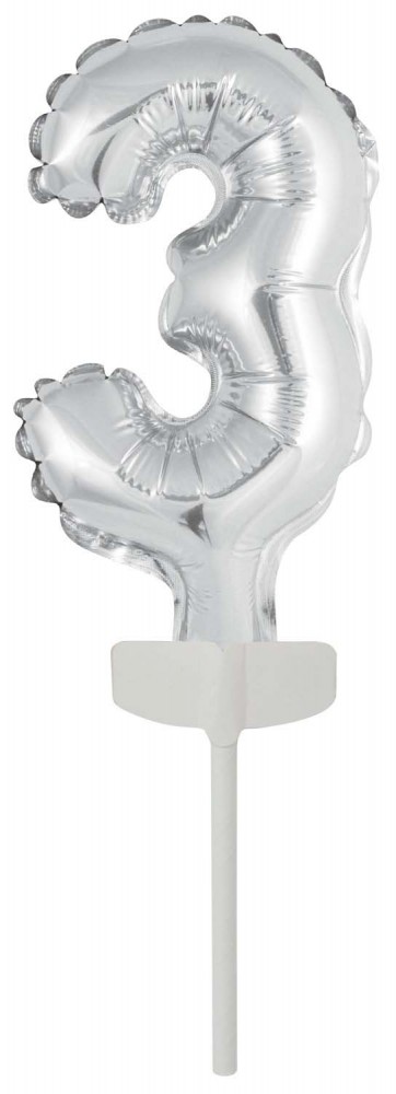 Silver, Ezüst 3-as szám fólia lufi tortára 13 cm