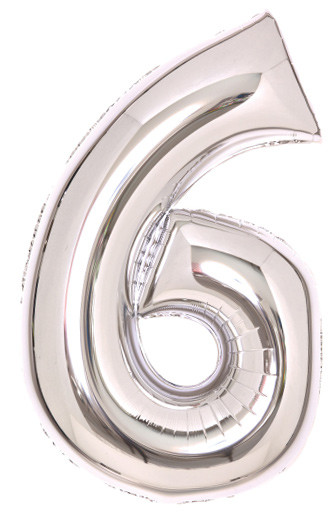 Silver, Ezüst 6-os szám fólia lufi 66 cm