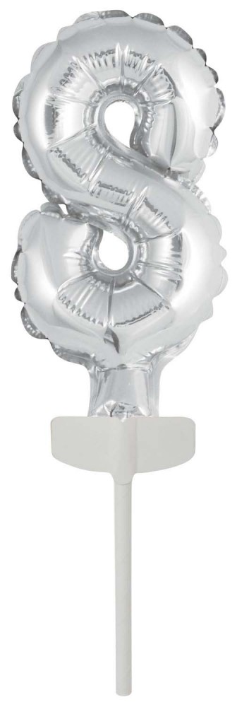 Silver, Ezüst 8-as szám fólia lufi tortára 13 cm