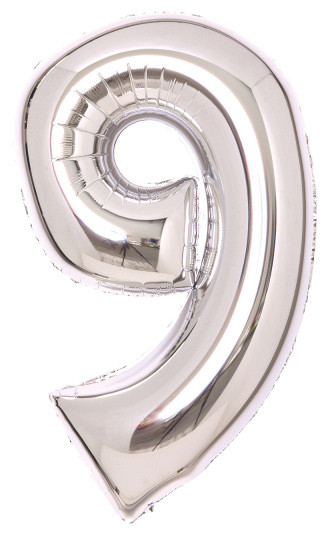 Silver, Ezüst 9-es szám fólia lufi 66 cm