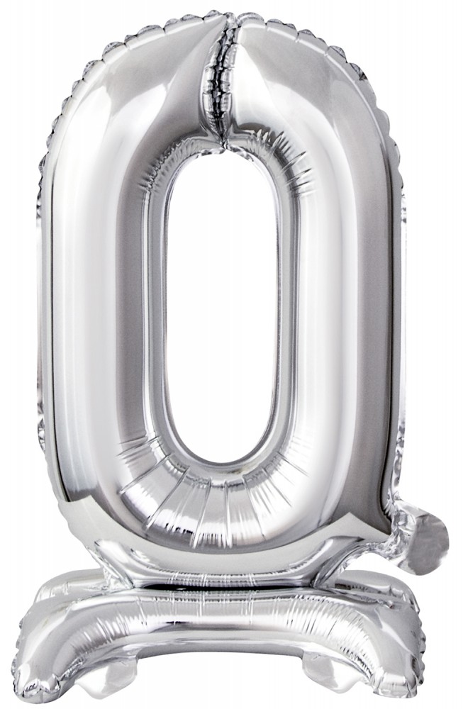 Silver mini 0-ás szám fólia lufi talppal 38 cm