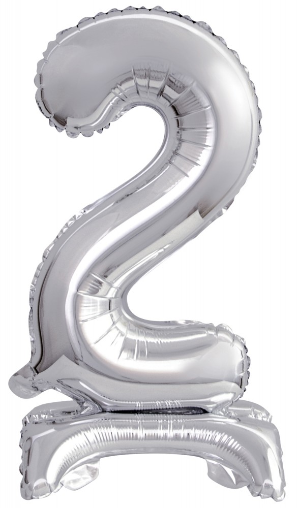 Silver mini 2-es szám fólia lufi talppal 38 cm