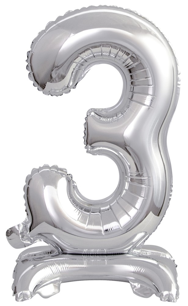 Silver mini 3-as szám fólia lufi talppal 38 cm