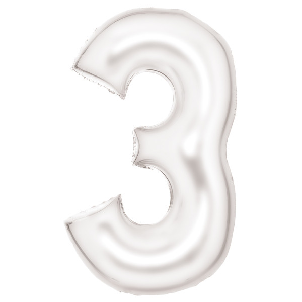 Lustre White, Fehér 3-as szám fólia lufi 86 cm
