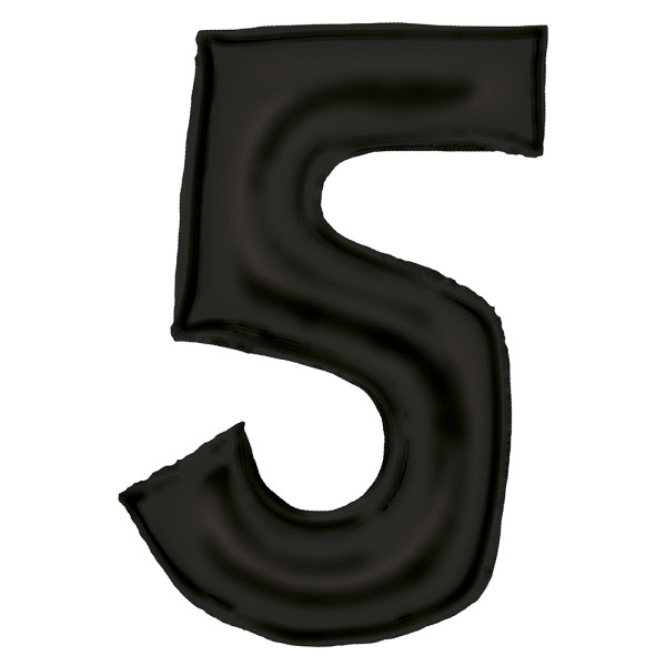 Lustre Black, Fekete 5-ös szám fólia lufi 86 cm