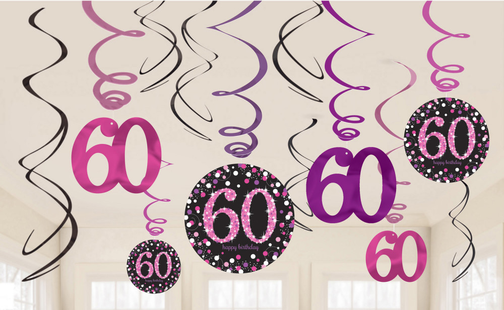 Happy Birthday Pink 60 szalag dekoráció 12 db-os szett.