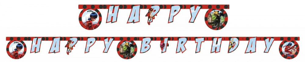 Miraculous Ladybug, Katicabogár és Fekete macska kalandjai Happy Birthday felirat 200 cm