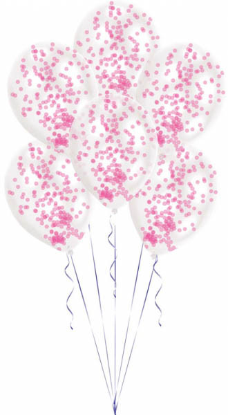Rózsaszín konfettivel töltött léggömb, lufi 6 db-os