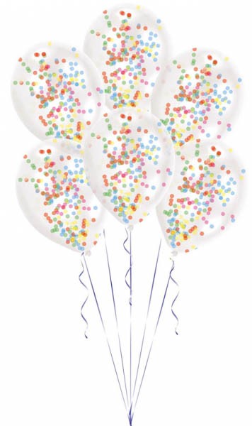 Színes konfettivel töltött léggömb, lufi 6 db-os