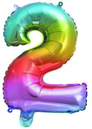 Multicolour Metallic mini 2-es szám fólia lufi 32 cm