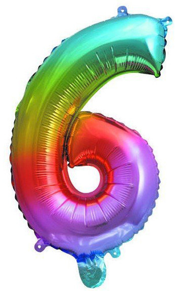 Multicolour Metallic mini 6-os szám fólia lufi 36 cm