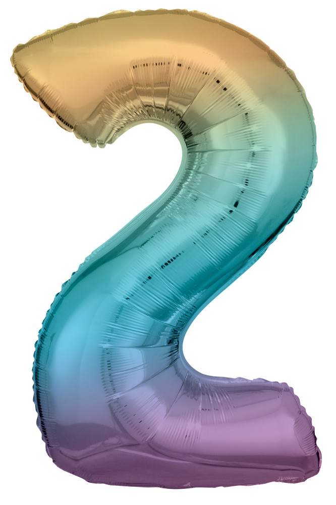 Színes Pastel Rainbow óriás szám fólia lufi 2-es, 83 cm