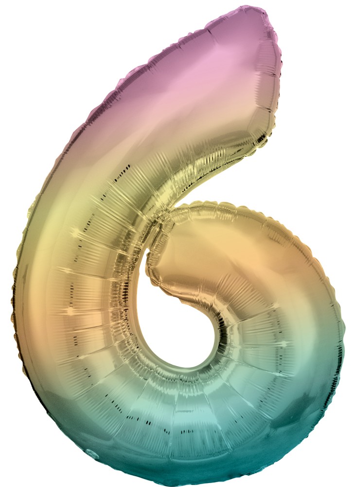 Pastel Rainbow óriás szám fólia lufi 6-os, 83 cm