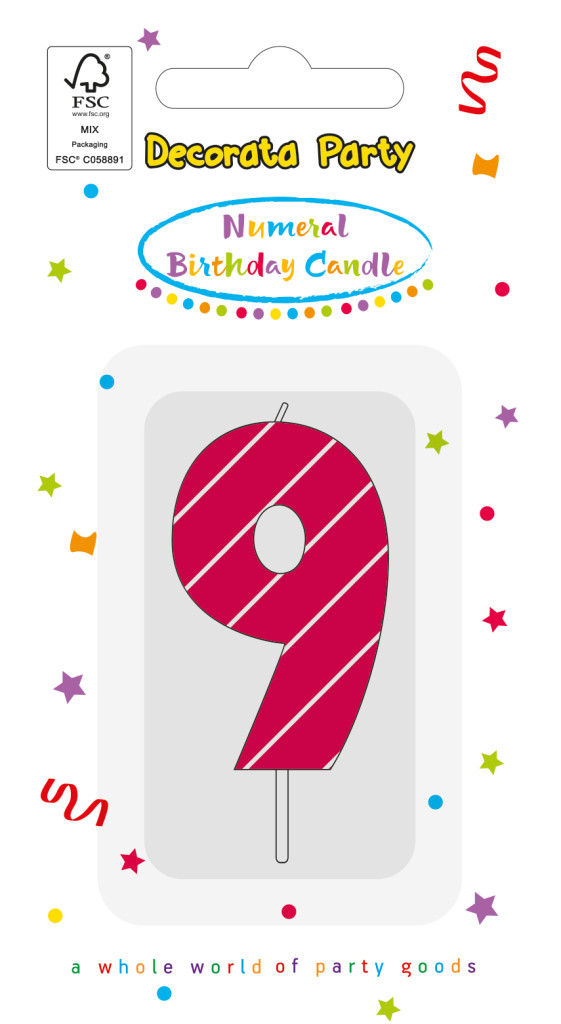 Színes 9-es tortagyertya, számgyertya